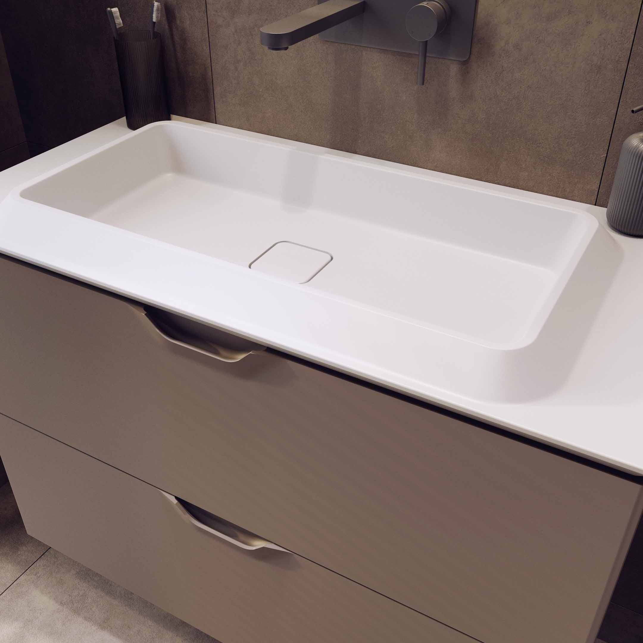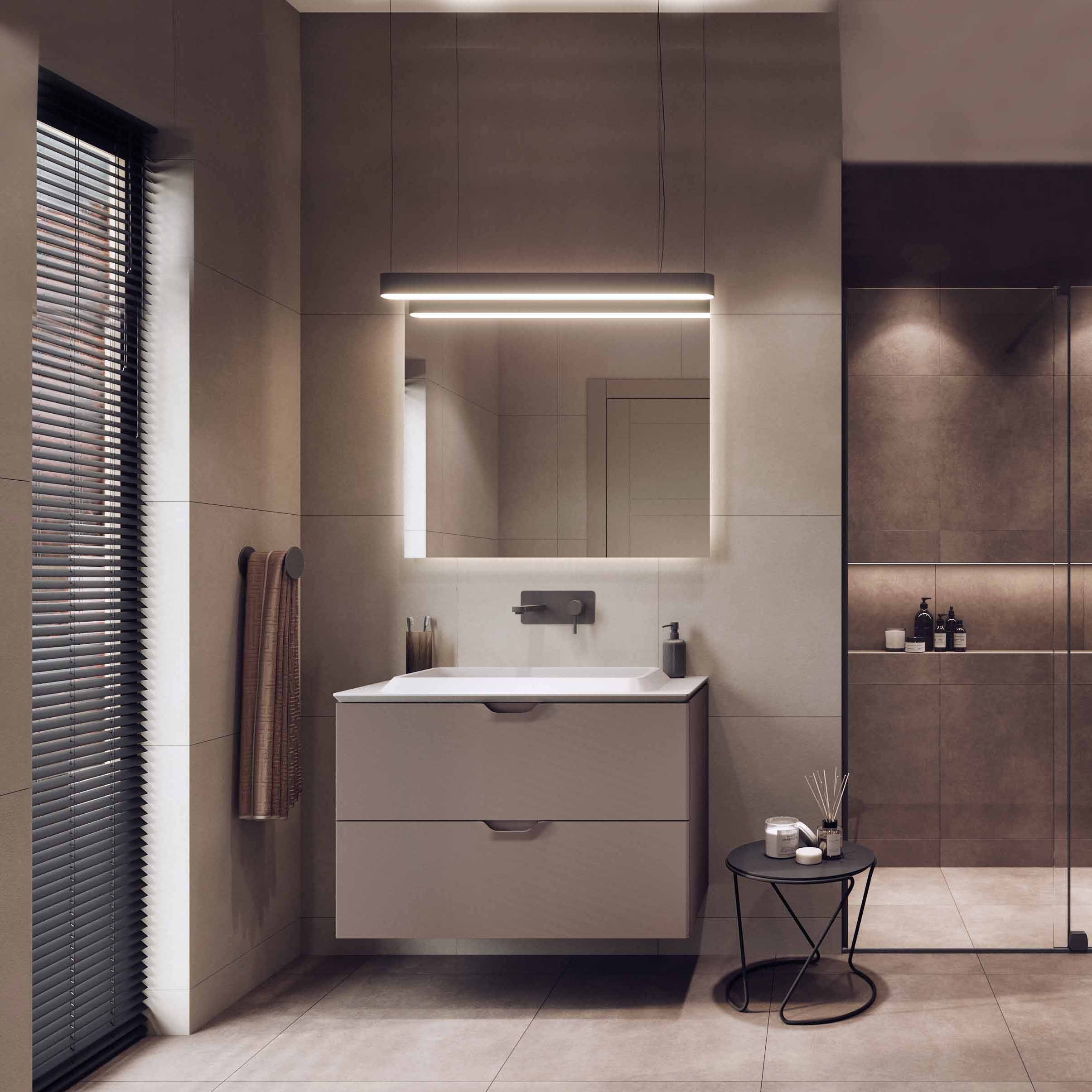 Kolekcja Smart, zaprojektowana przez Krzysztofa Chróścielewskiego, to definicja nowoczesnego minimalizmu. Czysta, oszczędna forma mebli została przełamana subtelnym detalem – uchwytem zintegrowanym z frontem, który dodaje charakteru i funkcjonalności bez zbędnych ozdobników. Kolekcja dostępna jest w wersji z umywalką zintegrowaną lub nablatową, co daje dużą swobodę aranżacyjną. Naturalna paleta kolorów ziemi dopełnia całość, wprowadzając do wnętrza spokój, harmonię i przytulność. Smart to propozycja dla miłośników prostej, ale dopracowanej estetyki.