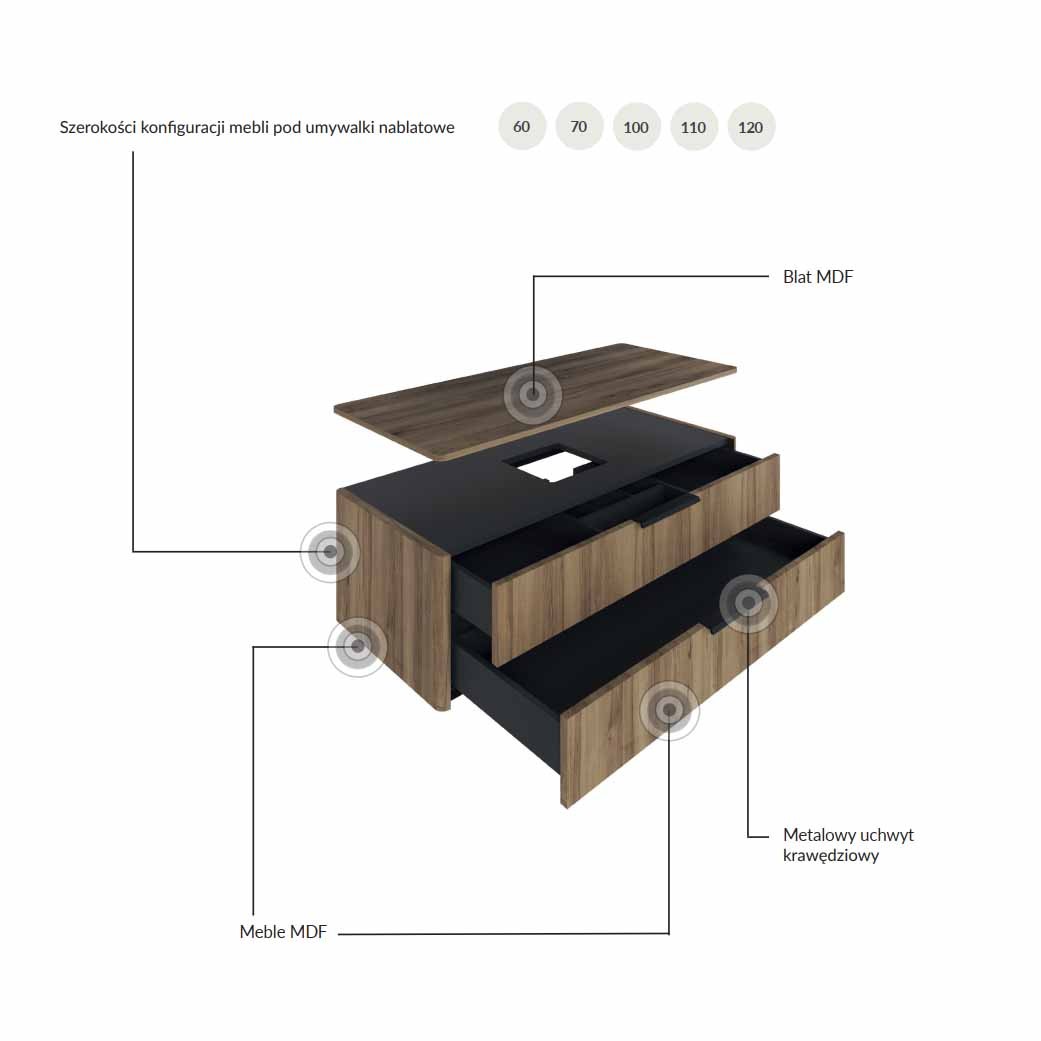 Kolekcja Lotos Style to połączenie nowoczesnego loftowego charakteru z funkcjonalnością i komfortem użytkowania. Korpusy oraz podstawy o zaokrąglonych krawędziach nie tylko podnoszą estetykę, ale także zwiększają bezpieczeństwo. Kolekcja oferuje meble podwieszane oraz na nogach, co daje możliwość dopasowania do różnorodnych aranżacji i przestrzeni łazienkowych. Lotos Style to szeroka gama mebli, które zaspokajają różne potrzeby funkcjonalne i estetyczne łazienki, a wersje kolorystyczne umożliwiają łatwe dopasowanie do różnych stylów i aranżacji wnętrz.