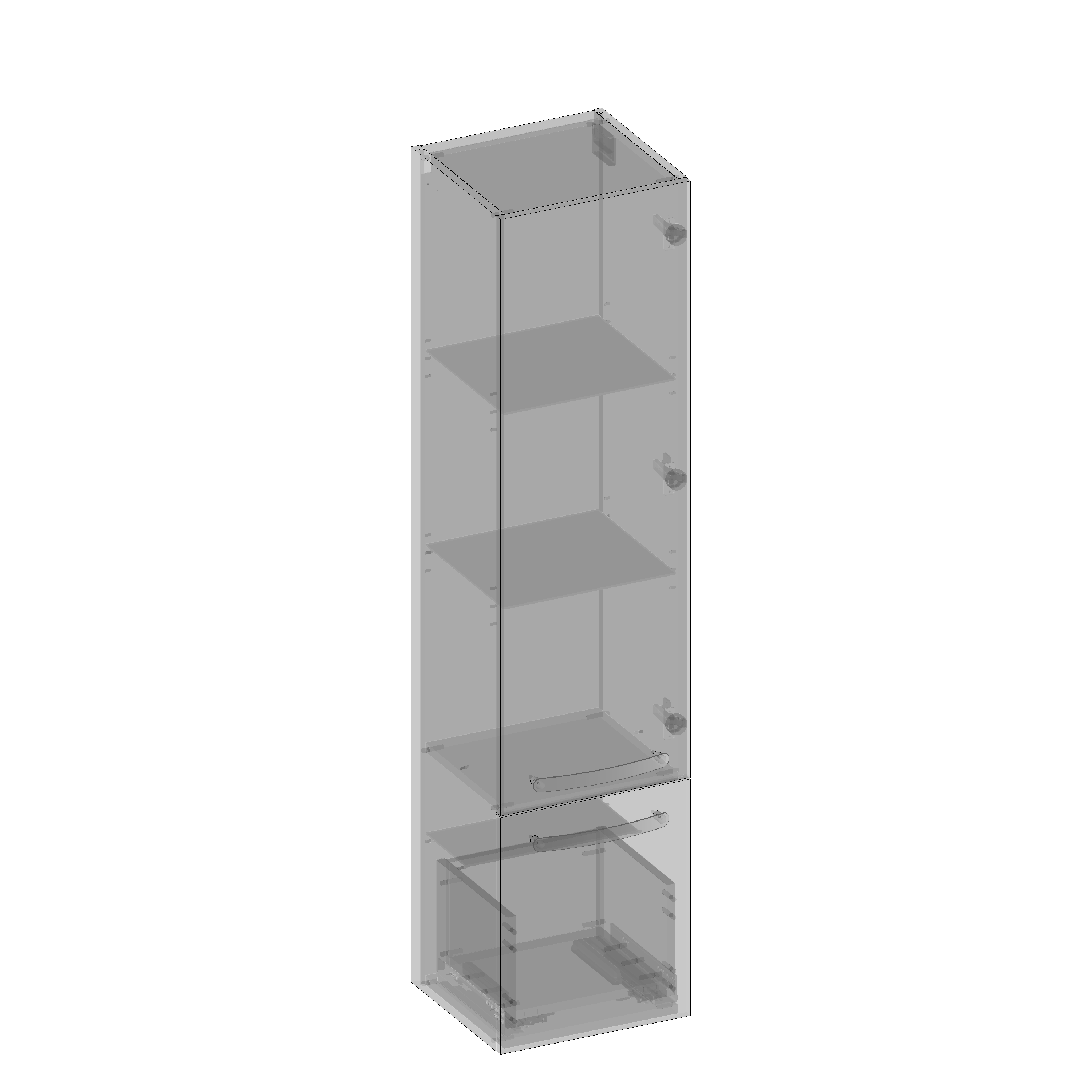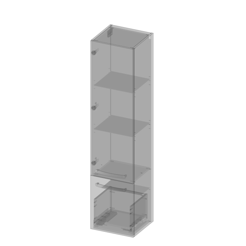 Vena 2.0 Słupek wiszący, jedne drzwi, jedna szuflada, lewy lub prawy, uchwyt reling, półki szklane dymione 35 cm